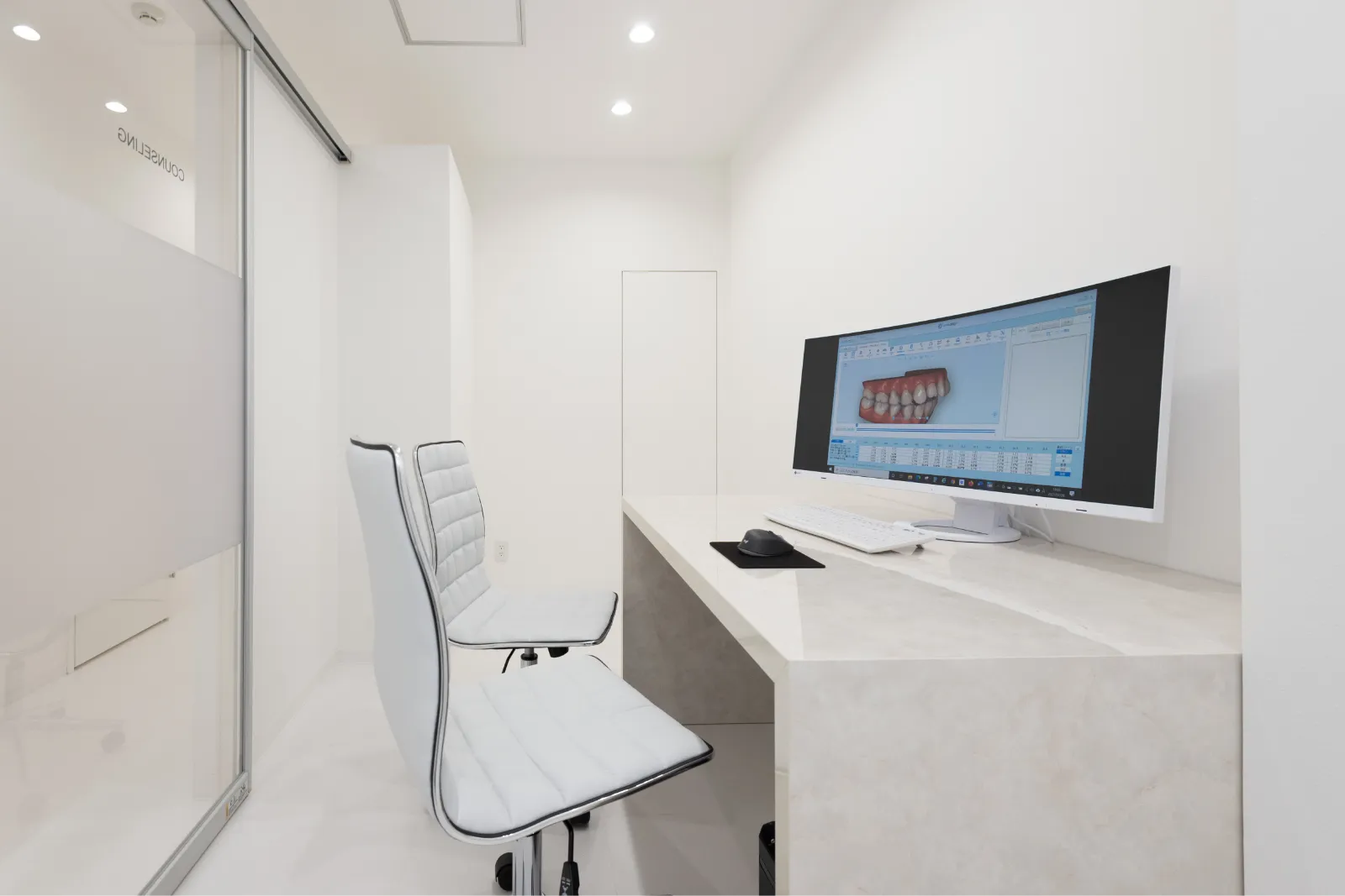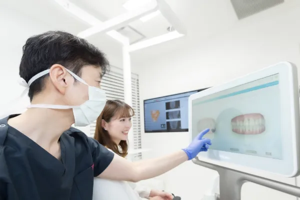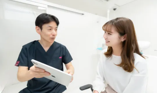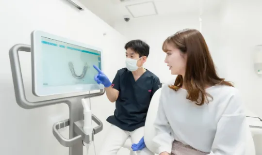 初診相談ではお口の中を見させていただき、「あなたの場合」治療期間や費用がだいたいどのくらいかかるのかをご提示させていただきます。お口の中のスキャンなどを行い、実際どのようにキレイに治るのかシミュレーションをご確認いただくことが出来ます。